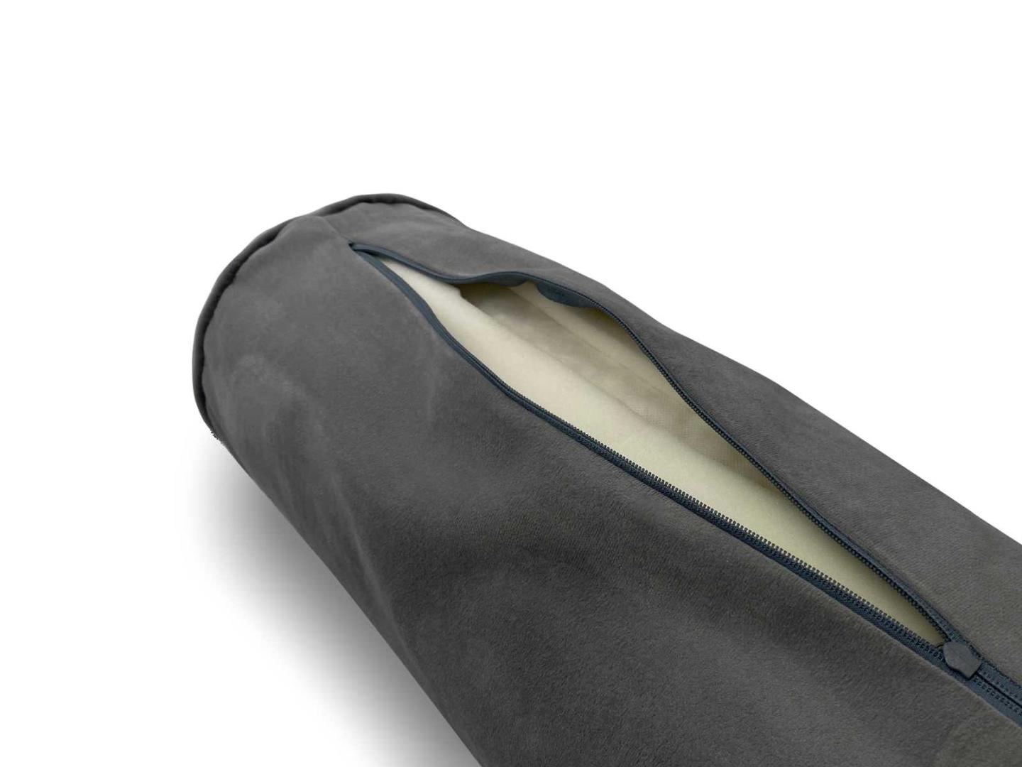 Внутри подушки расположилось силиконизированное волокно. Это прочный и упругий наполнитель, который отлично держит форму. Качественная набивка и равномерное распределение материала внутри аксессуара позволяют добиться оптимальной плотности для валика. Он будет не только удобен, но и стоек к деформациям.