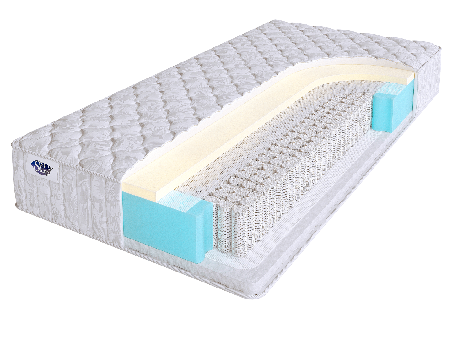 Чехол матраса выполнен из хлопкового жаккарда, простеганного на 100 г. синтепона.
