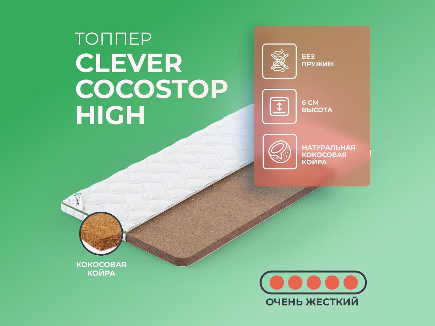Интернет-магазин Dream-Expert.ru представляет матрас Топпер Clever CocosTop High 90x195 производства фабрики Clever. Купить данную модель — значит обеспечить себе здоровый позвоночник и комфортный сон на долгие годы.