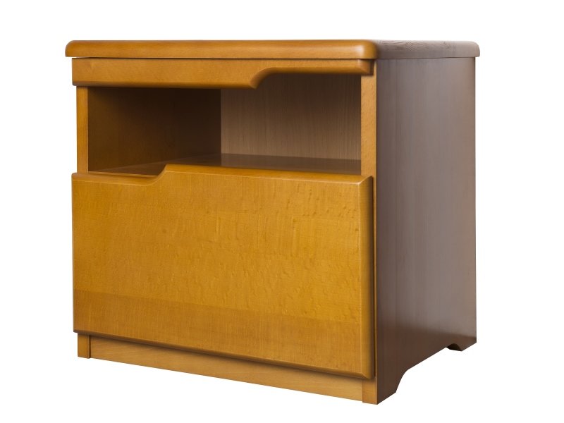 Фасадная часть прикроватной тумбы изготовлена из массива бука. Изделие привлекает практичностью и современной стилистикой. Выкатной ящик бесшумно открывается, благодаря телескопическим направляющим. Стильный дизайн подчеркивает натуральную структуру дерева.